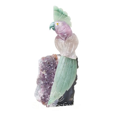 Mint Green & Rose Amethyst Parrot on Druzy Crystal Base