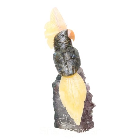 Golden Yellow & Labradorite Parrot on Amethyst Crystal Base